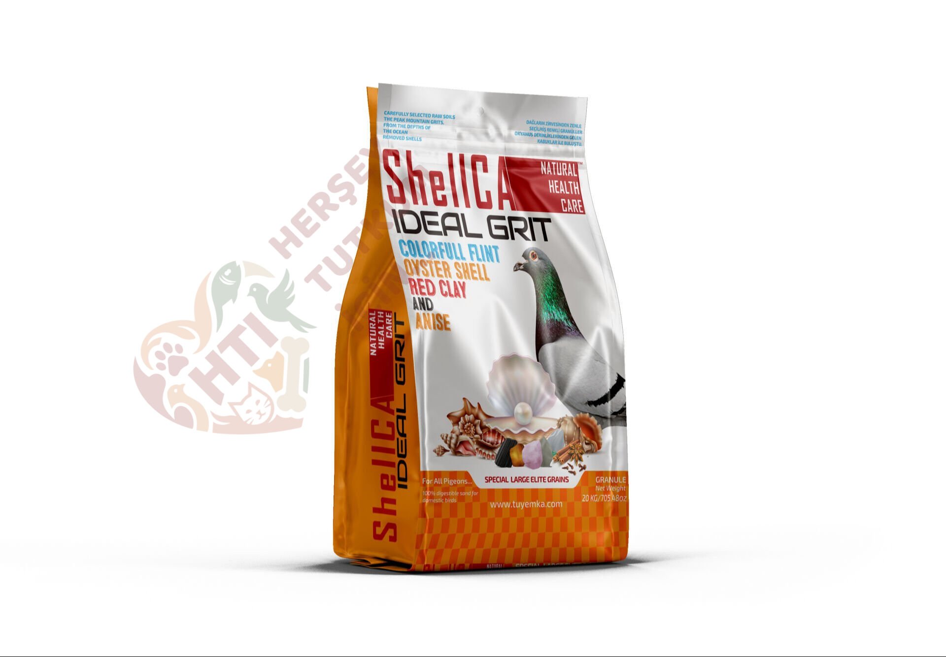 ShellCA Ideal Grit, güvercinler ve tüm kanatlılar için özel olarak öğütülmüş; midye kabuğu, çözünebilir çakıl taşları ve doğal mineraller içeren, renklendirici ve boya içermeyen granül mineral karışımıdır. Sindirimi destekler, kalsiyum ihtiyacını doğal yollarla karşılar.